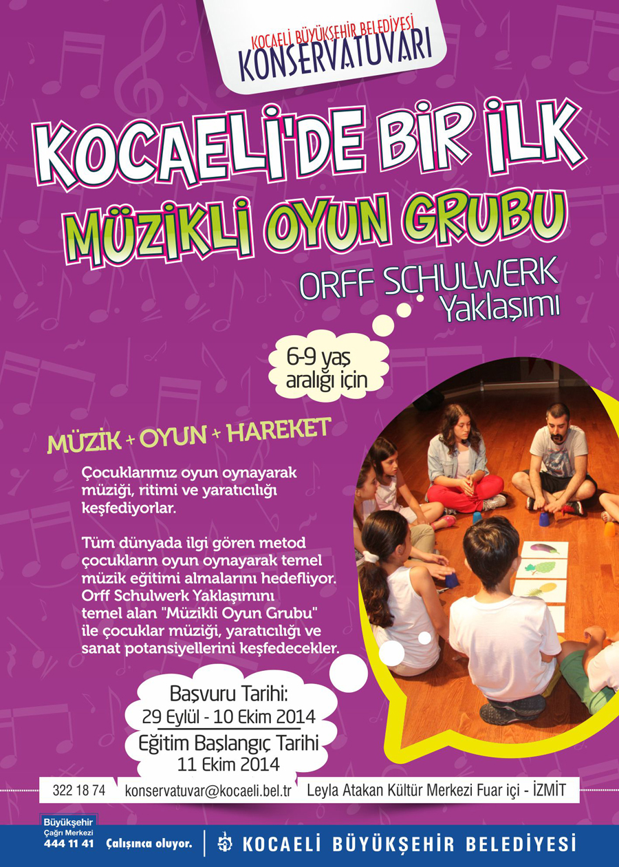 Kocaeli Büyükşehir Belediyesi Konservatuarı’nın, 2 yıldır sürdürdüğü Müzikli Oyun Grubu Uygulaması (Orff Schulwerk Yaklaşımı), 2014-2015 eğitim-öğretim döneminde de devam ediyor.