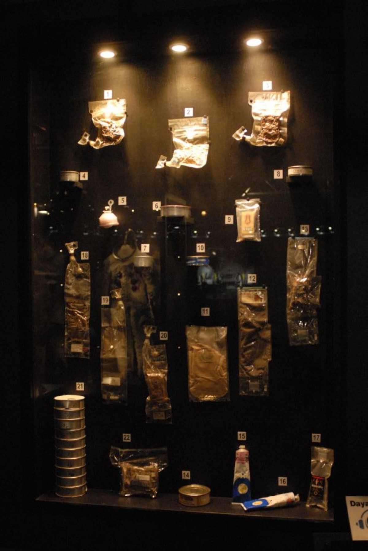 Serginin bu bölümünde astronotların besin kaynakları kurutulmuş ve toz halinde yiyecekler görülebiliyor. Bu yiyecekler hemen kana karışıyor ve tuvalet ihtiyacını da geciktiriyor. Günümüzde astronotlar uzayda, taze meyve ve sebzeler, hamburger, hatta dondurma bile yiyebiliyor. Astronotların tuvalet ve diş fırçalama gibi ihtiyaçlarını giderdikleri donanımlar da bu bölümde görülebiliyor.