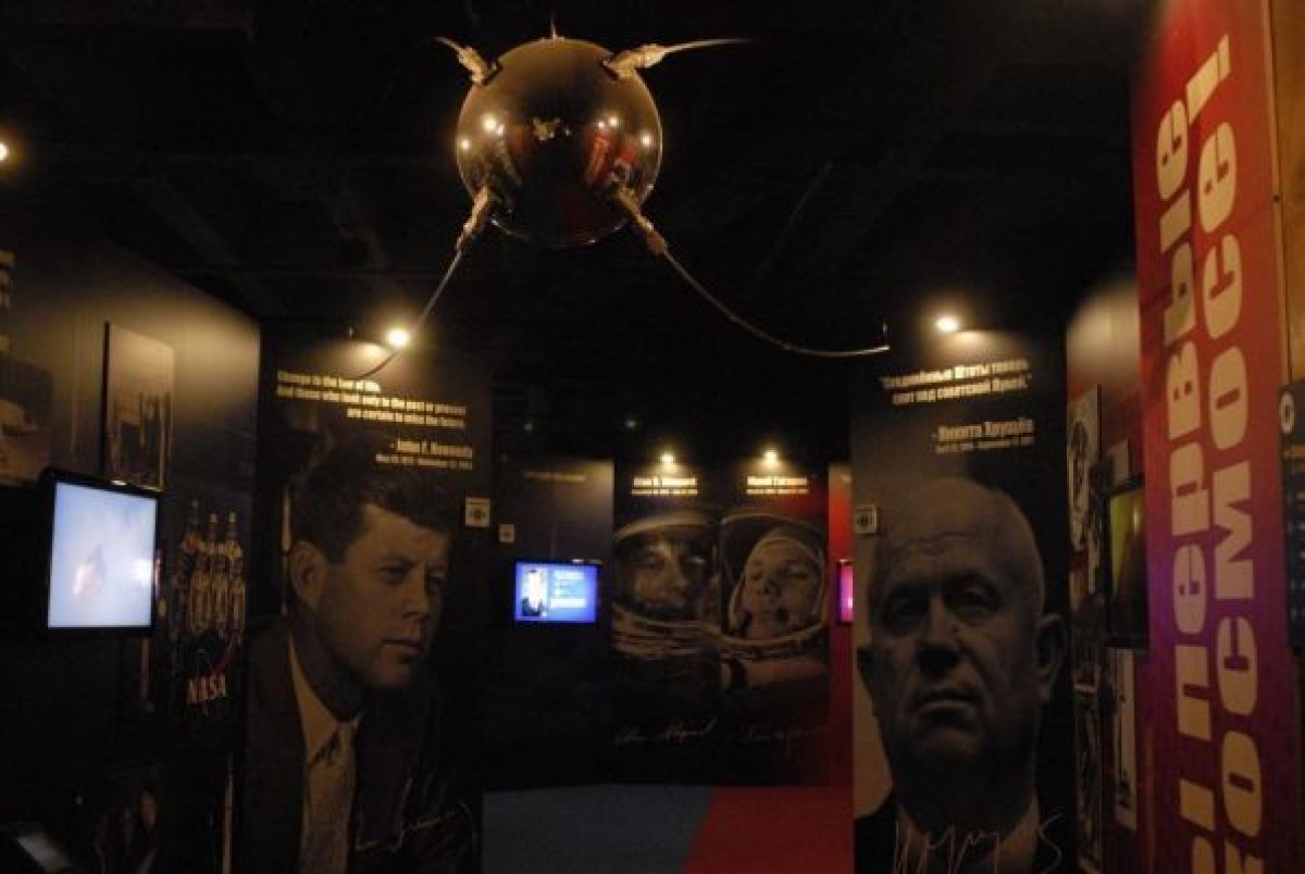 Kafanızı kaldırdığınızda ise Rusların, uzay yarışını başlatan ilk çalışması, 4 Ekim 1957’de uzaya gönderilen ilk uydu Sputnik‘in birebir kopyasını görebiliyorsunuz. 4 ay sonra ise ABD uzaya Explorer 1 adlı ilk uydusunu gönderiyor. Bir ay sonra ise Sovyetler Birliği, Laika isimli köpeği uzaya gönderiyor ama Laika, roketin aşırı ısınmasından dolayı hayatını kaybediyor.