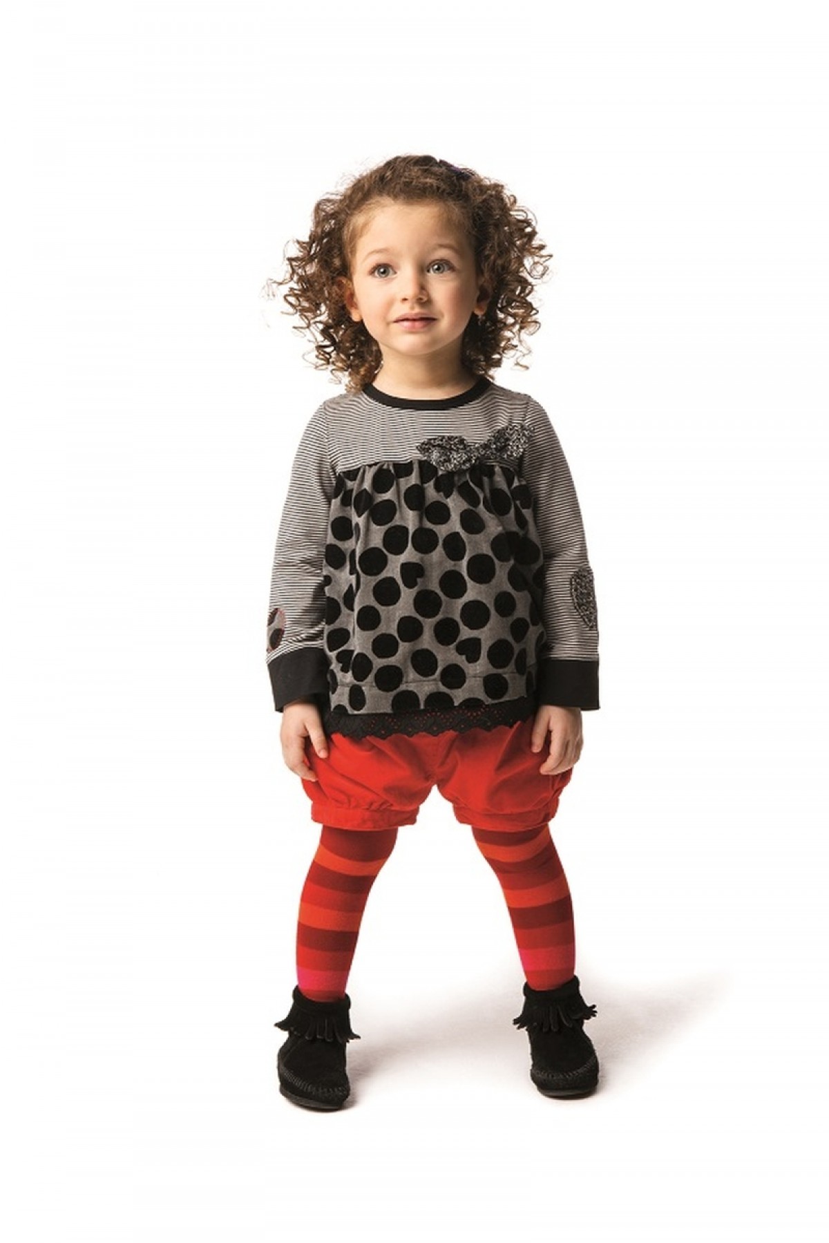 Koleksiyonda yer alan renkli ve desenli külotlu çoraplar, kot pantolonlar, sweatshirtler, çiçek ve hayvan desenli elbiseler, geometrik çizgili gömlekler, grafik motiflerinin süslediği örgü giysiler okul öncesi çocuklara hitap ediyor.