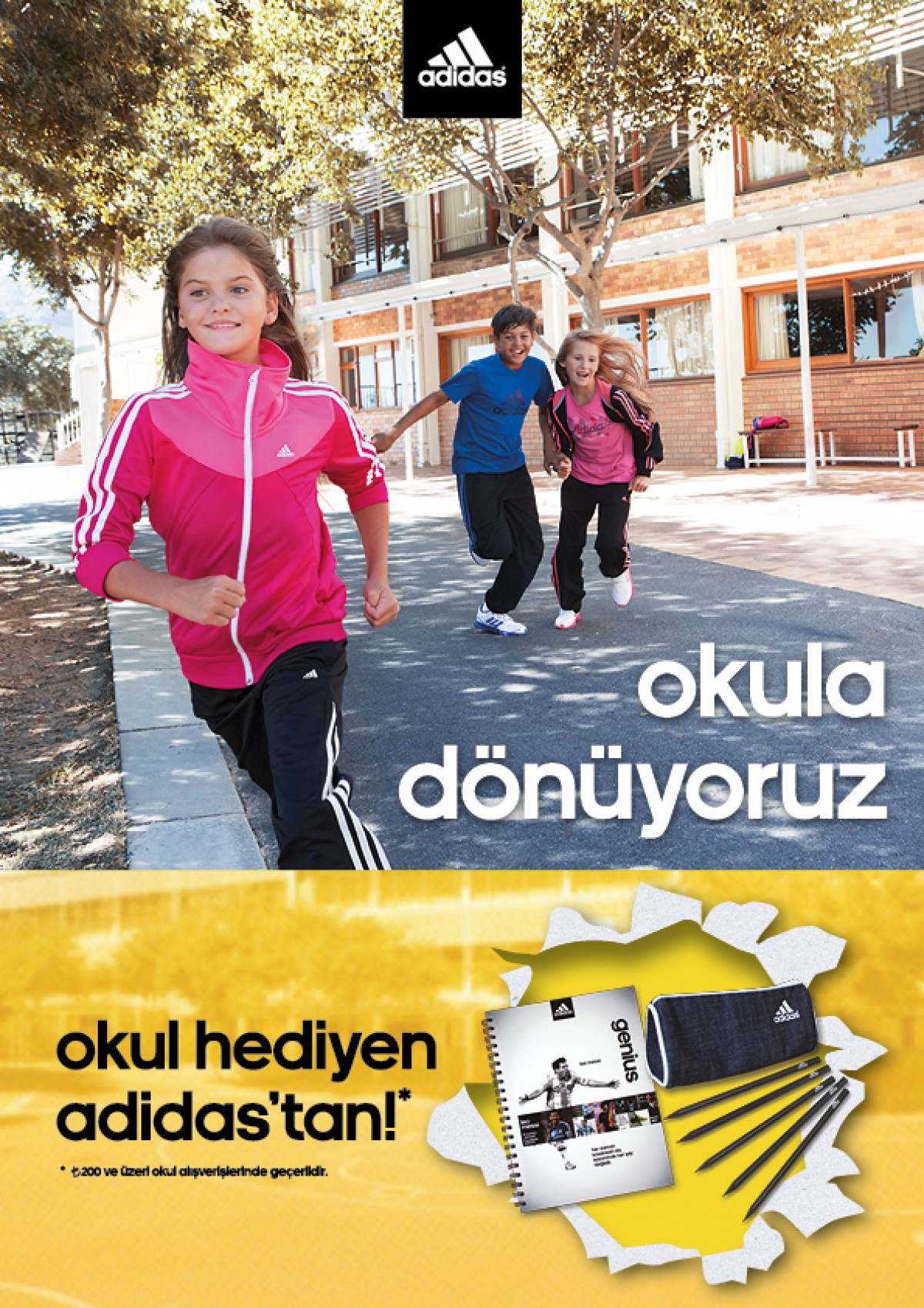 adidas, aynı zamanda gençleri sevindirecek bir okula dönüş kampanyası düzenliyor. adidas mağazalarından yapılan 200 TL ve üzeri alışverişler,öğrencilere defter, kalem kutusu ve kurşun kalemlerden oluşan bir okul seti kazandırıyor.