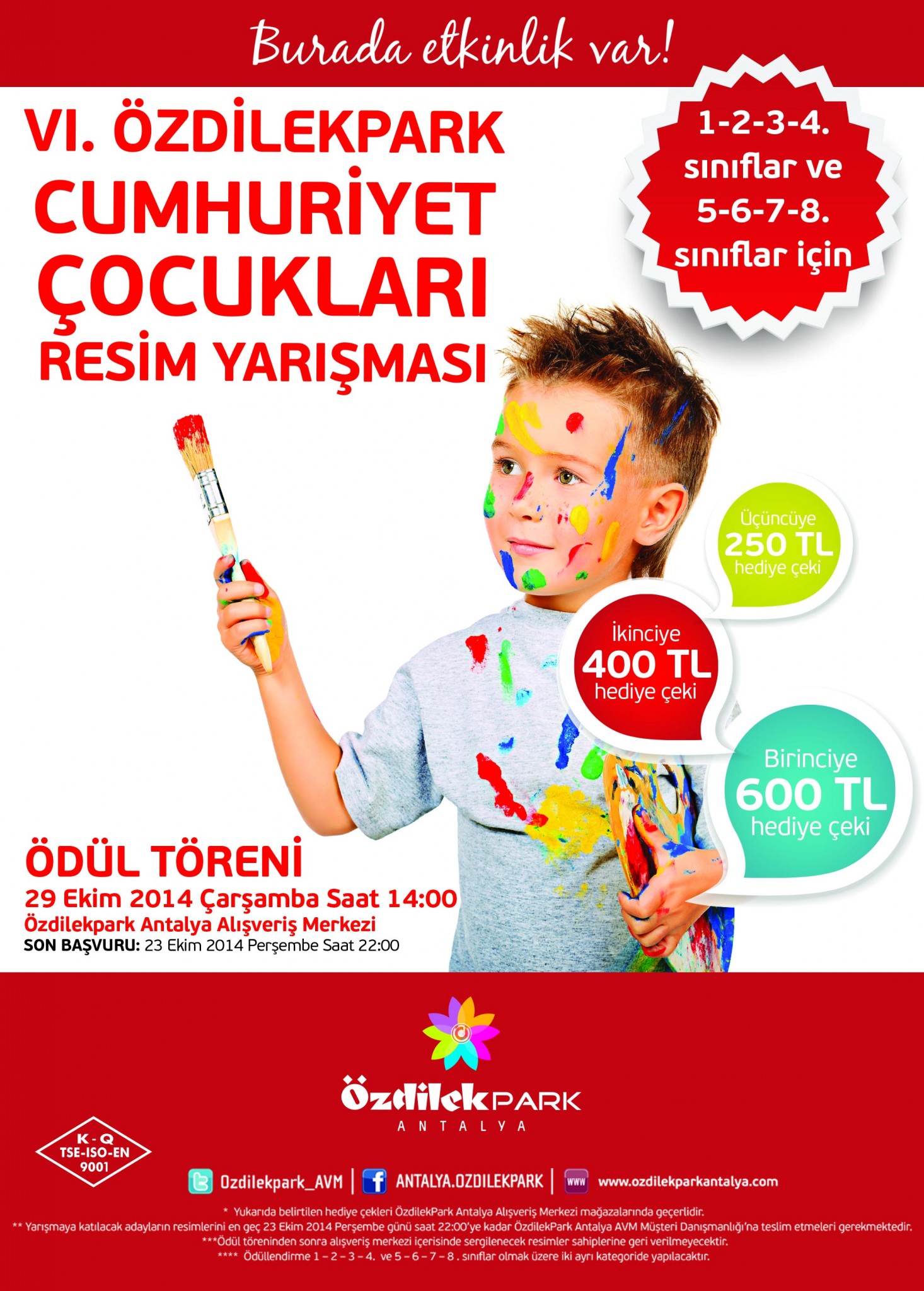 ÖzdilekPark Antalya Alışveriş Merkezi tarafından, Cumhuriyet’in kuruluşunun 91. yıldönümü anısına düzenlenen 6’ın “Cumhuriyet Çocukları” konulu resim yarışması için başvurular başladı.