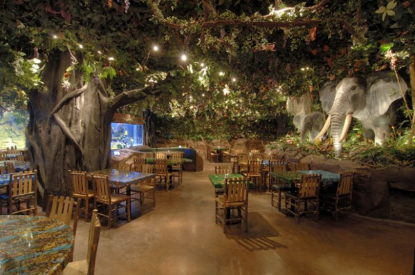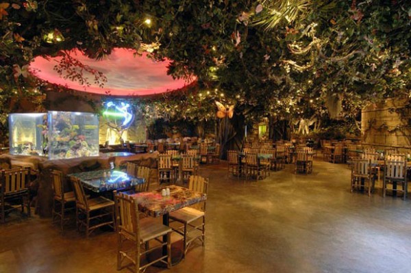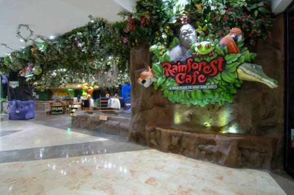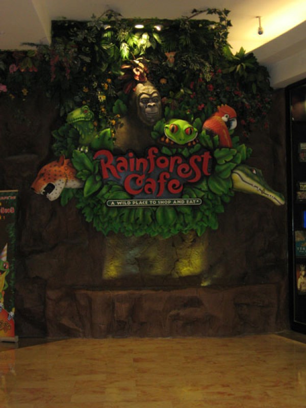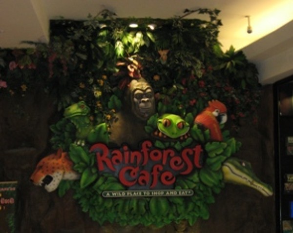 Bir yağmur ormanının ortasındasınız! Şimşekler çakıyor, etrafınızda meraklı goriller, heybetli filler sizi izliyor. Dünyanın çeşitli yerlerinden gelen ve göz kamaştıran renkleriyle, dev akvaryumlar içinde yüzen balıkları izleyerek huzur buluyorsunuz. Burası Rainforest Cafe.