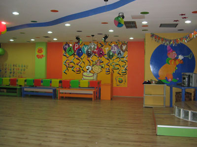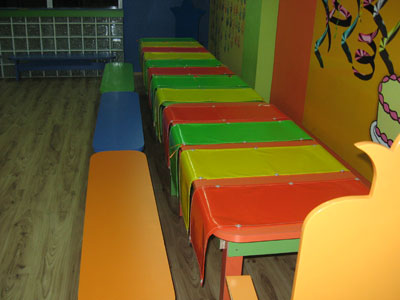 110 metre kare olan mekanın zemini parkeden ve duvarları rengarenk. Masalardan, sandalyelere kadar her şey, güvenli ve estetik bir şekilde tasarlanmış.