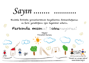 TOÇEV Sertifikası: Yılbaşında çalışanlar veya müşteriler adına, bir çocuğun bir aylık eğitim masrafı olan 50 TL’yi bağışlayarak sertifika temin edilebiliyor. Kurumun ve hediye edilecek kişinin adı, istenilen cümlelerle sertifikanın üst bölümünde yazılıyor. Ayrıca firmaya ait logo da özel tasarımlarla sertifikada yer alabiliyor.