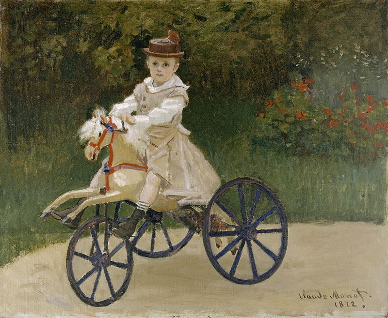 Jean, Monet’in Camille Doncieux ile ilk oğluydu. Babası onu ilk defa çizdiğinde dört aylıktı. Babasının yanında en az 11 tablo var, ancak Renoir gibi diğer ressamlar da kendisini ve annesini çizdi. Bu portre, 1872 yazında, Jean beş yaşındayken Paris yakınlarındaki Argenteuil’de kiralanan aile evinin bahçesinde çizildi. Claude tabloyu korudu ve hiç sergilemedi.