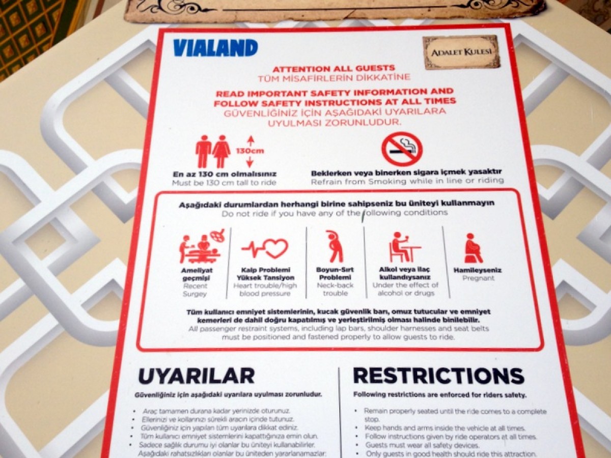 Parkta, her üniteye özel boy sınırlaması bulunuyor. Çocuklar boyları ölçüldükten sonra ünitelere alınıyor. Bazı ünitelerde yaş sınırlaması da bulunuyor. Her ünitede, ziyaretçilerin güvenli şekilde eğlenebilmesi için özel eğitim almış görevliler sizi karşılıyor. Parktaki birçok ünitede engelli erişimi de bulunuyor.