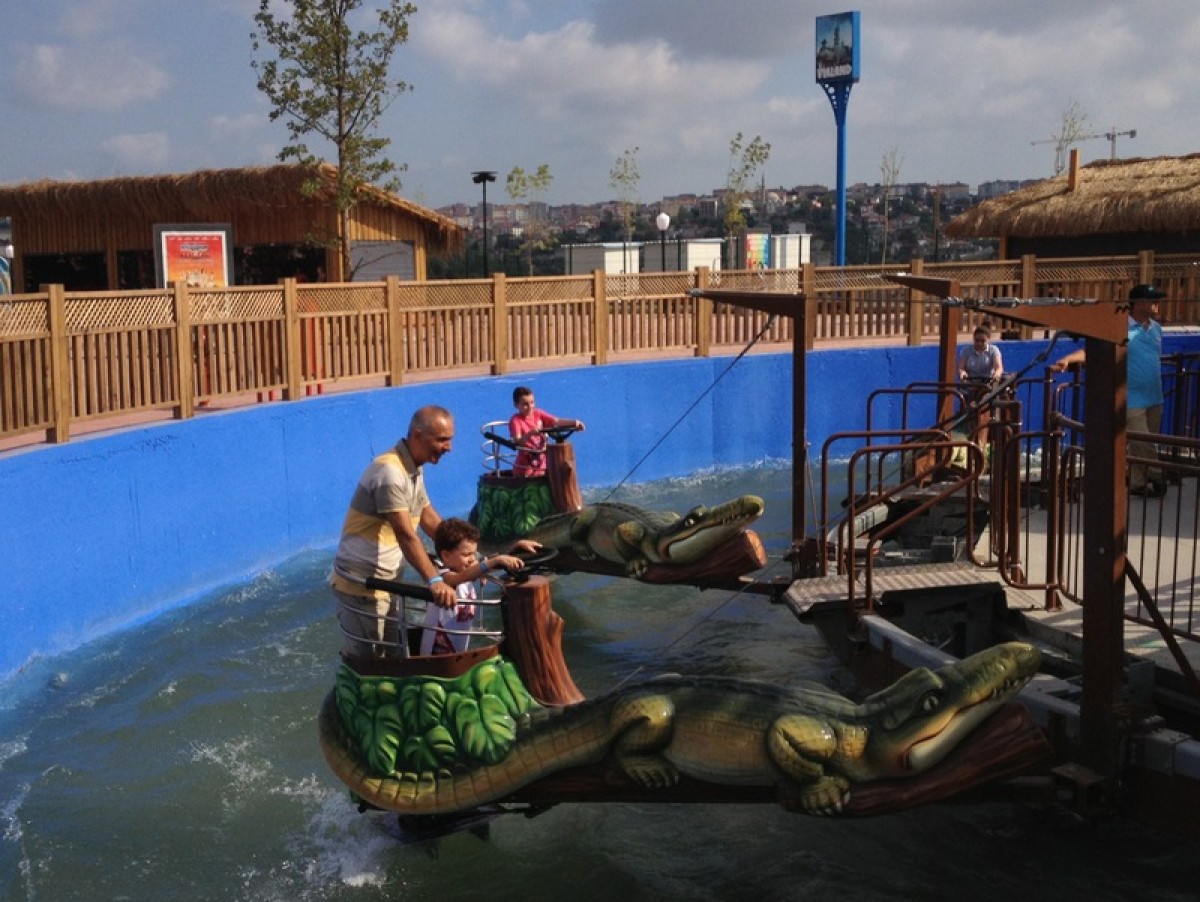 Bir başka sulu eğlence olan “Jet Ski” ise, çocukların aileleriyle birlikte bindiği ve direksiyona geçtiği bir eğlence ünitesi. Dönen araçların yönünü çocuklar belirliyor, istedikleri hızda ve yönde gidebiliyor.