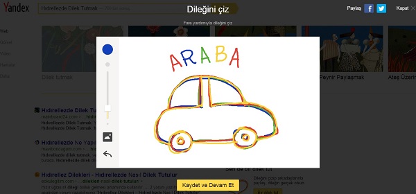 Yandex, kullanıcılara Hıdırellez dileklerini arama sonuçları sayfasında çizip, sosyal medyada paylaşma imkanı da sunuyor. Bahar bayramını kutlamak için yaptığı değişiklik ile Türkiye’deki kullanıcılara özel bir çalışma gerçekleştiren Yandex, Mayıs ayı içerisinde gerçekleşecek olan Hıdırellez Bayramı ile ilgili diğer etkinliklere de kolay bir şekilde ulaşılmasını sağlıyor.
