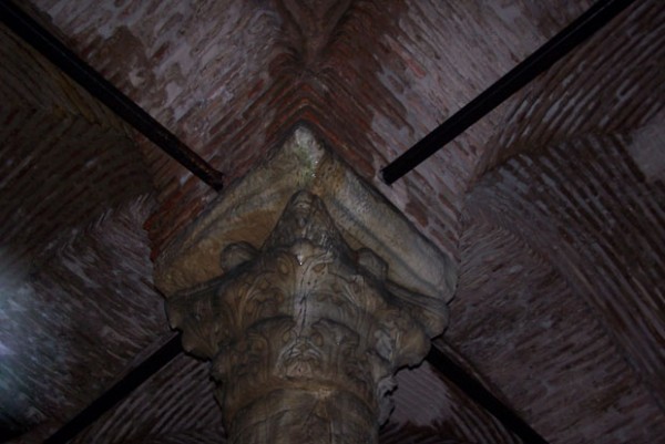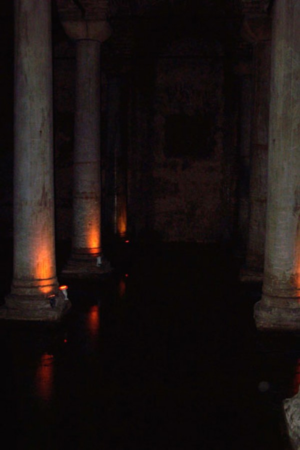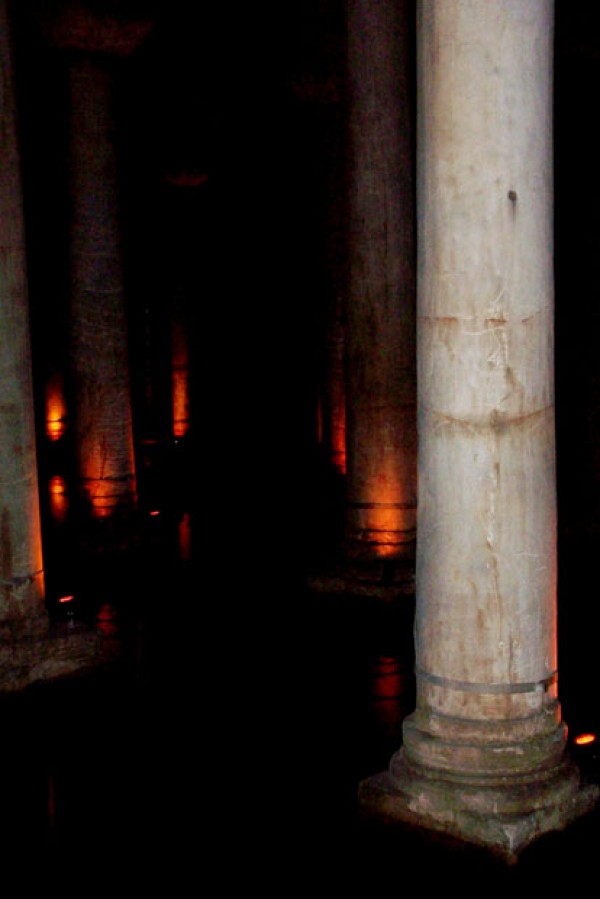 Sarnıçta yer alan sütunların büyük çoğunluğu silindir biçiminde. Sarnıcın kuzeybatı köşesinde yer alan iki sütunun altında, iki Medusa başı, Roma Dönemi heykel sanatının şaheserlerinden. Sarnıçta yer alan Medusa başlarının, hangi yapılardan sarnıca getirildiği bilinmiyor. Bunun yanı sıra, Medusa başları ile ilgili farklı efsanelerden bahsediliyor.