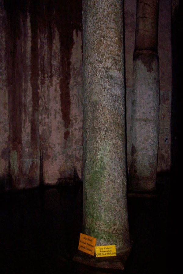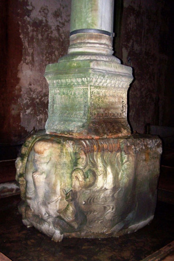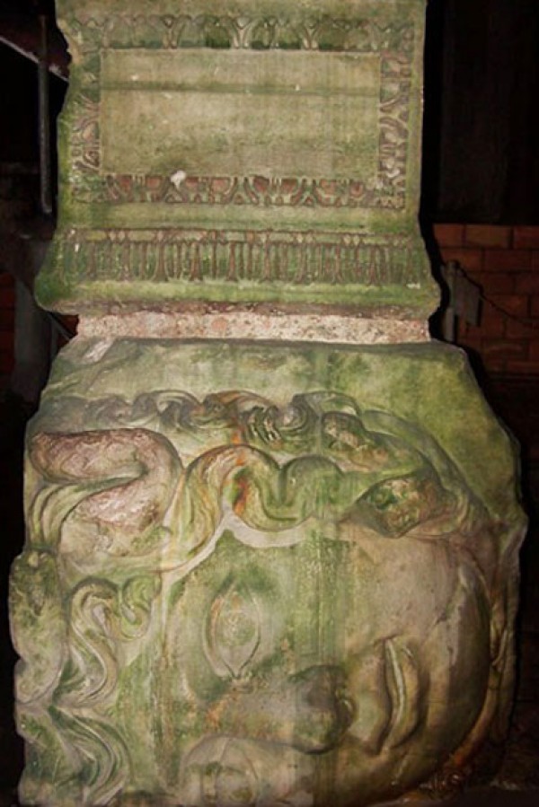 “Bir efsaneye göre, Yunan Mitolojisinde yer altı dünyasının dişi canavarı olan üç Gorgona’dan biridir. Bu üç kız kardeşten yılanbaşlı Medusa, kendisine bakanları taşa çevirme gücüne sahiptir. Bir görüşe göre, o dönemde büyük yapıları ve özel yerleri korumak için, Gorgona resim ve heykelleri kullanılırdı ve Sarnıca Medusa başının konulması da bu yüzdendir…”