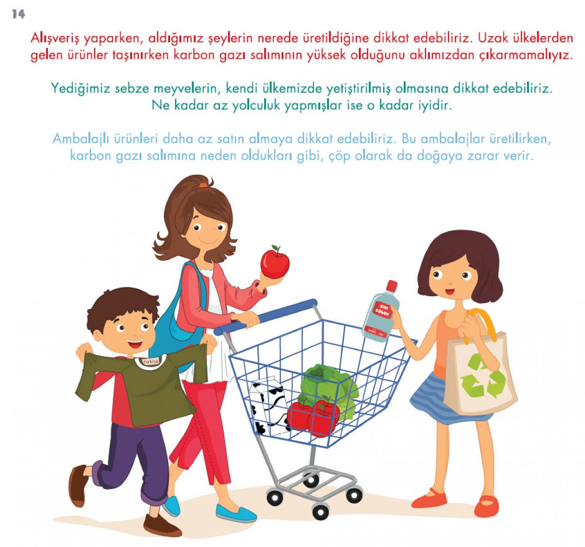 Kitabımızı okuyan çocuklar, karbon ayak izinin nasıl oluştuğunu ve günlük hayatlarında gerçekleştirecekleri basit uygulamalarla ayak izlerini nasıl azaltabileceklerini öğrenecekler. Eğlenceli bir dil ve renkli bir görsel dünya yaratarak çocukların bir yandan bilgilenirken bir yandan da keyifli zaman geçirmelerini amaçladık.
